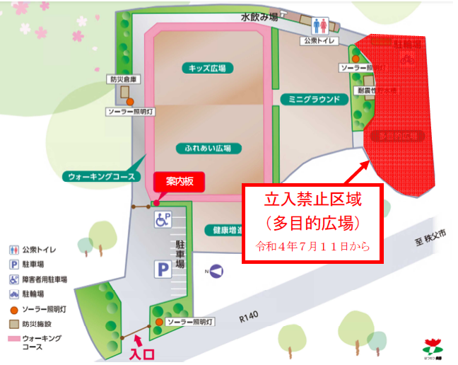 なお、多目的広場以外の広場や遊具、トイレは通常通り使用できます。