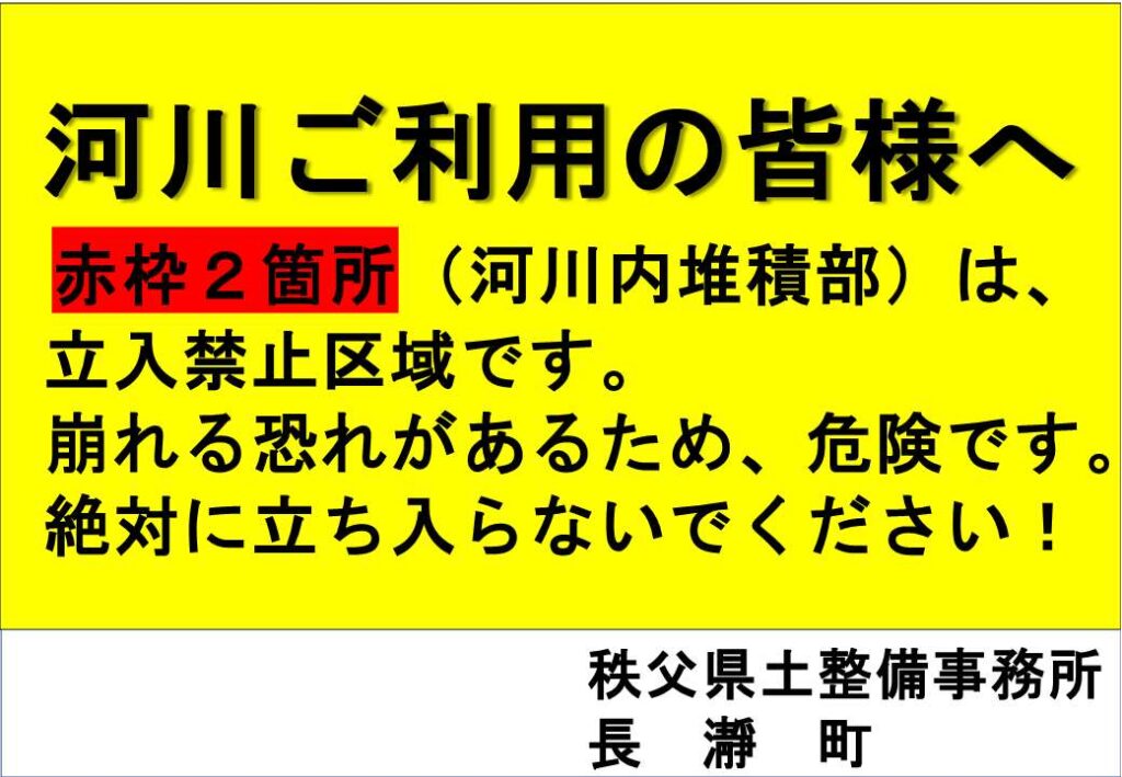 河川利用者は二次崩落や新たな崩落に十分注意するとともに、今後の埼玉県秩父県土整備事務所の情報にご注意ください。